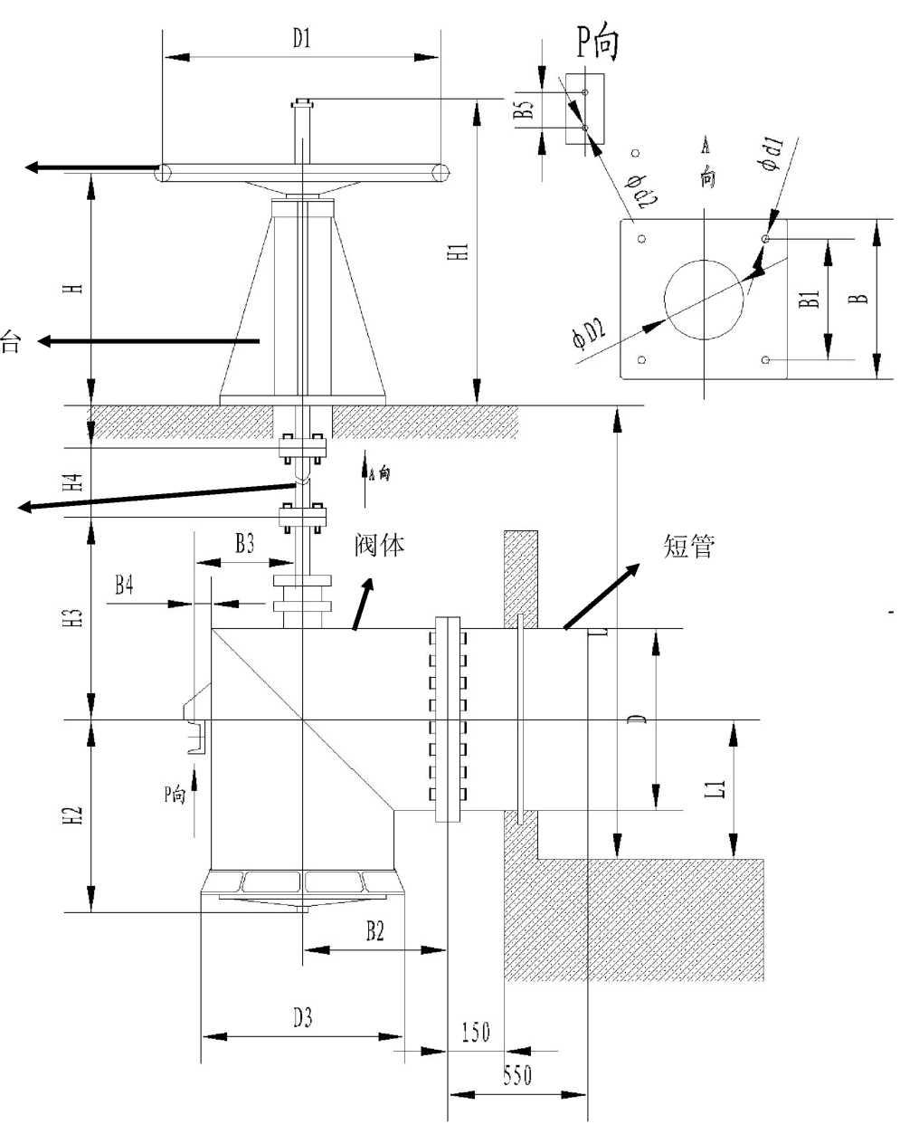 連接閘閥和短管的法蘭(中間加橡膠墊),把短管穿入預留孔中,借閘閥 的外露閥桿找好垂直度,固定支撐槽鋼。